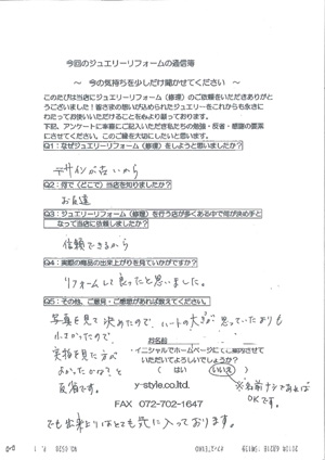 ジュエリーリフォームを行う店が多くある中で何が決め手となって当店に依頼をしましたか?