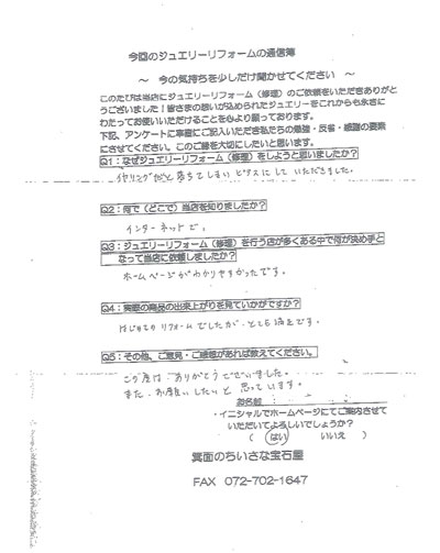 インターネットでジュエリーリフォームを行う店が多くある中で何が決め手となって当店に依頼をしましたか?