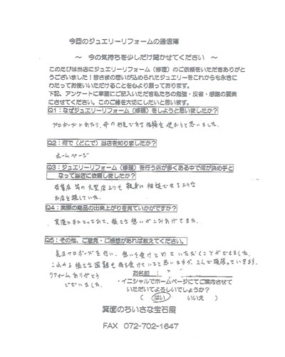 プロポーズにあたり、母の形見である指輪を使おうと思いました何で(どこで)当店を知りましたか?(検索ワードは?)