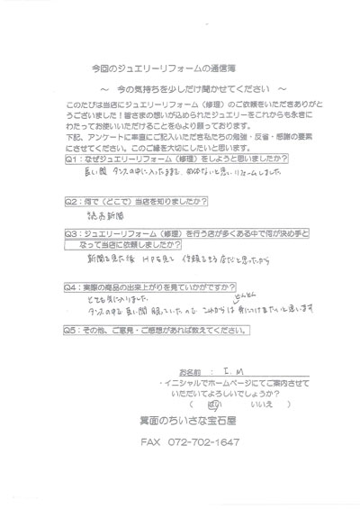 読売新聞ジュエリーリフォームを行う店が多くある中で何が決め手となって当店に依頼をしましたか?