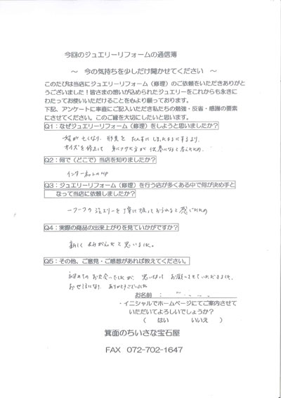 インターネットのHPジュエリーリフォームを行う店が多くある中で何が決め手となって当店に依頼をしましたか?