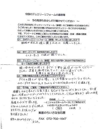 インターネットで娘が調べました。ジュエリーリフォームを行う店が多くある中で何が決め手となって当店に依頼をしましたか?