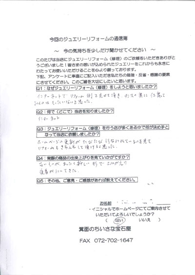 ジュエリーリフォーム お客様の声(167)