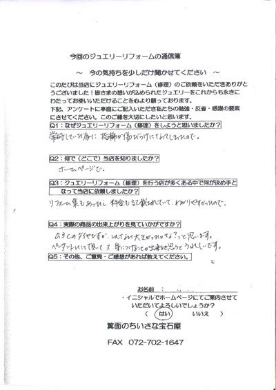 ホームページでジュエリーリフォームを行う店が多くある中で何が決め手となって当店に依頼をしましたか?