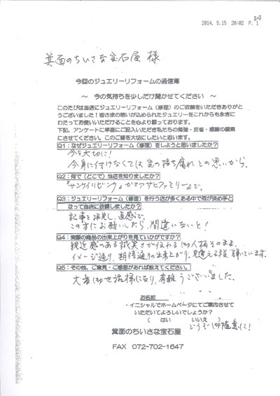 『サンケイリビング』か『朝日ファミリー』でジュエリーリフォームを行う店が多くある中で何が決め手となって当店に依頼をしましたか?