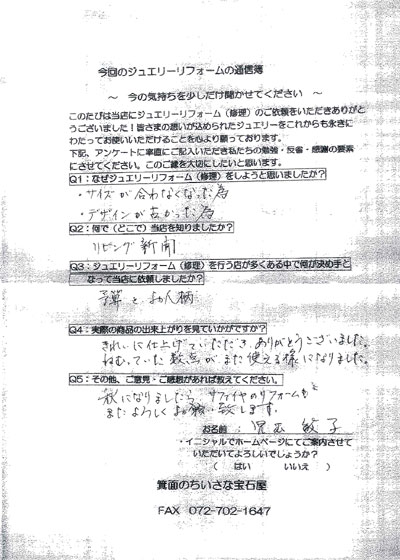 リビング名神ジュエリーリフォームを行う店が多くある中で何が決め手となって当店に依頼をしましたか?