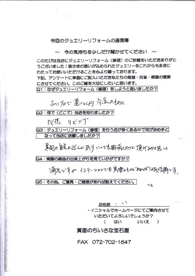 北摂リビング(地域誌)ジュエリーリフォームを行う店が多くある中で何が決め手となって当店に依頼をしましたか?