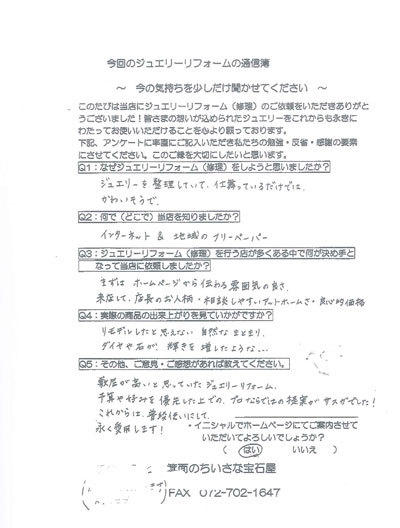 ジュエリーリフォーム お客様の声(205)