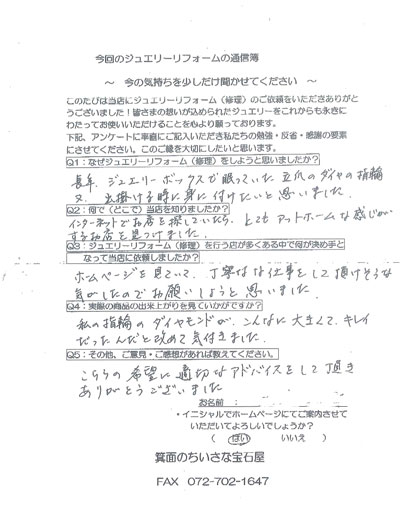 ジュエリーリフォームを行う店が多くある中で何が決め手となって当店に依頼をしましたか?