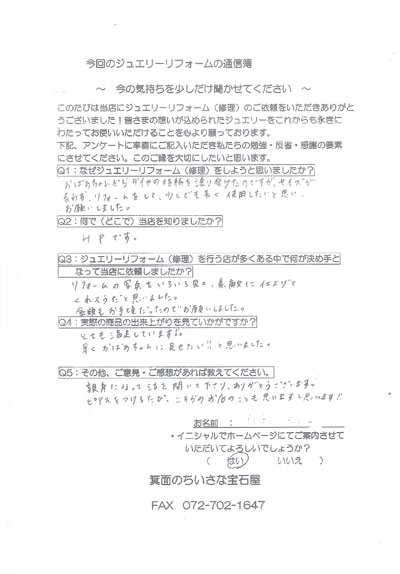 A ホームページです。ジュエリーリフォームを行う店が多くある中で何が決め手となって当店に依頼をしましたか?