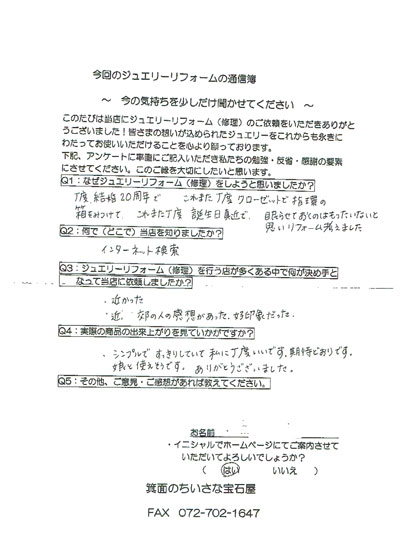 インターネット検索ジュエリーリフォームを行う店が多くある中で何が決め手となって当店に依頼をしましたか?