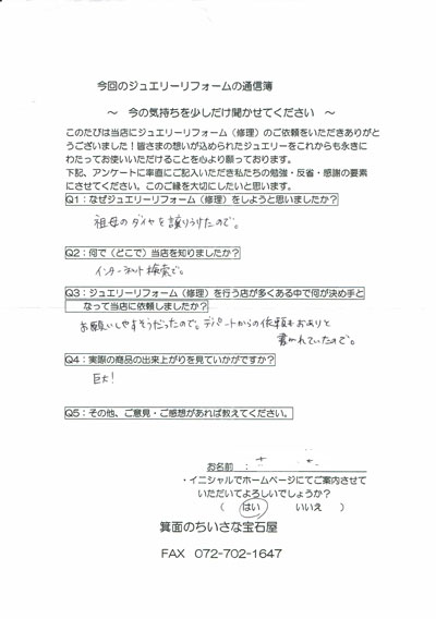 ジュエリーリフォーム お客様の声(257)