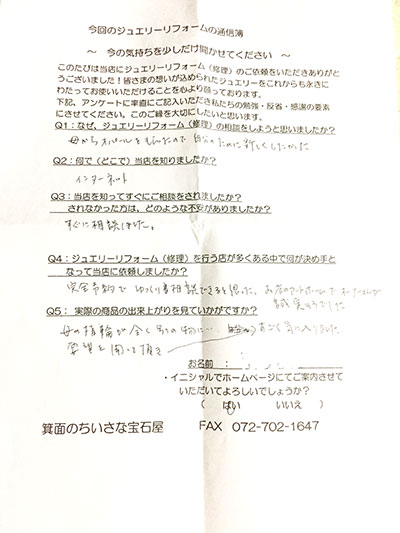 ジュエリーリフォームを行う店が多くある中で何が決め手となって当店に依頼をしましたか?
