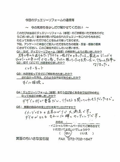 ジュエリーリフォーム お客様の声(276)