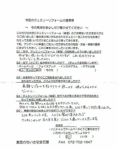 ジュエリーリフォームを行う店が多くある中で何が決め手となって当店に依頼をしましたか?