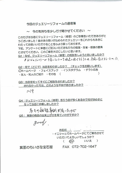 ジュエリーリフォームを行う店が多くある中で何が決め手となって当店に依頼をしましたか?