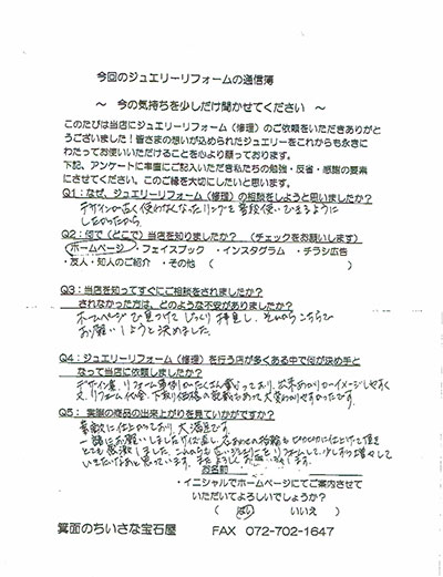 ジュエリーリフォーム お客様の声(304)