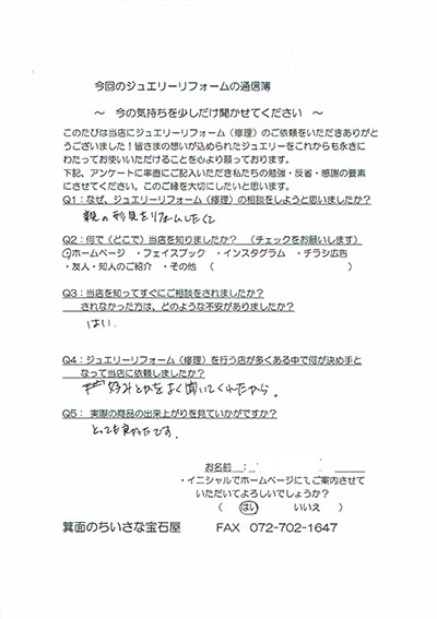 ジュエリーリフォーム お客様の声(315)