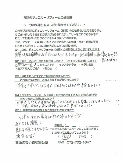 ジュエリーリフォーム お客様の声(319)