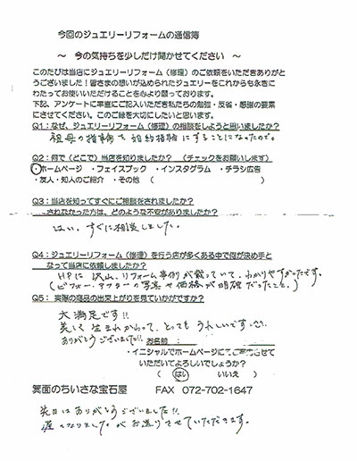ジュエリーリフォーム お客様の声(321)