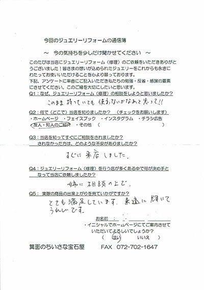ジュエリーリフォームを行う店が多くある中で何が決め手となって当店に依頼をしましたか?