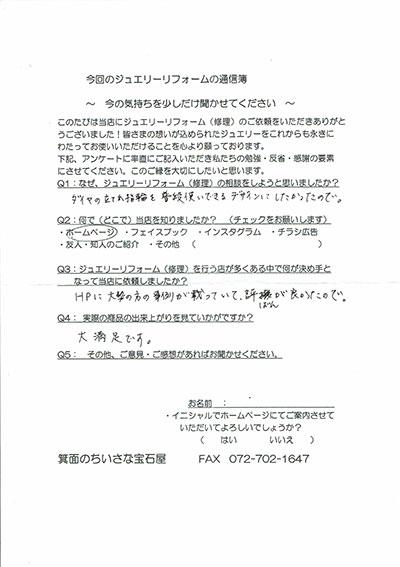 ホームページジュエリーリフォームを行う店が多くある中で何が決め手となって当店に依頼をしましたか?