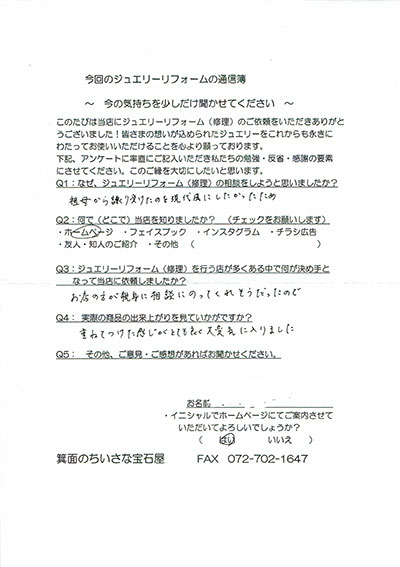ジュエリーリフォーム お客様の声(335)