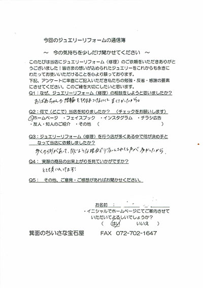 ジュエリーリフォーム お客様の声(342)