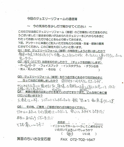 ジュエリーリフォーム お客様の声(348)