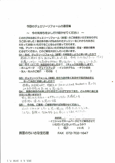 ジュエリーリフォーム お客様の声(358)