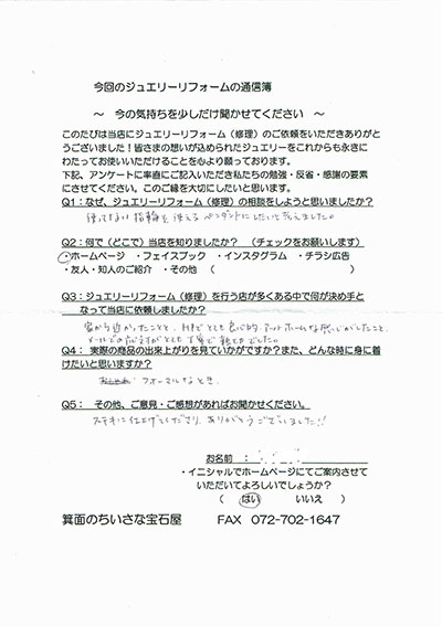 ジュエリーリフォーム お客様の声(368)