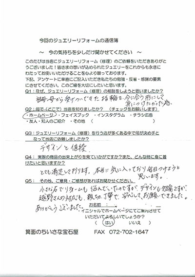 ジュエリーリフォーム お客様の声(389)