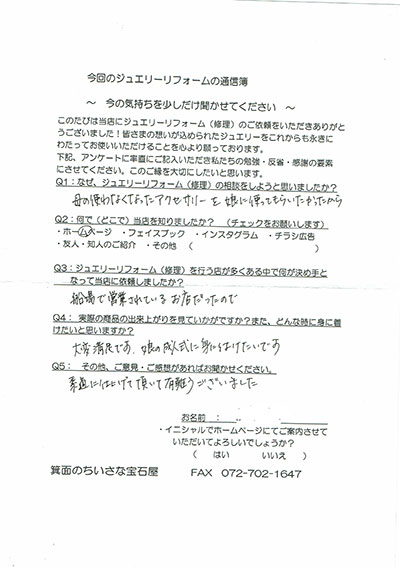 ジュエリーリフォーム お客様の声(397)