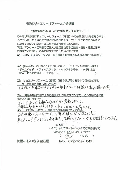 ジュエリーリフォーム お客様の声(411)