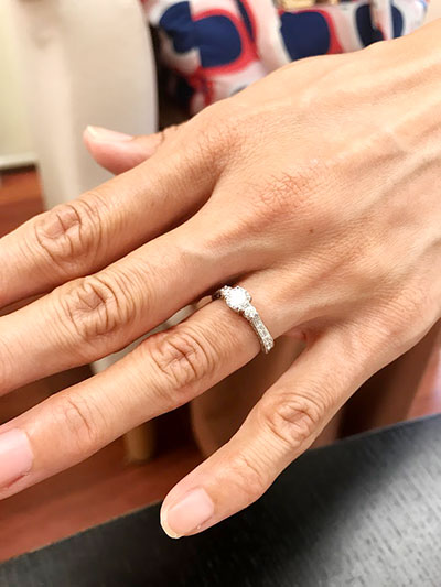 このたびは当店をご利用いただきありがとうございました。ぜひ素敵に出来上がった指輪を重ね付け含めいろいろなシーンでお使いいただければ嬉しく思います。また何かあれば気軽にご相談くださいませ。どうぞよろしくお願いいたします。