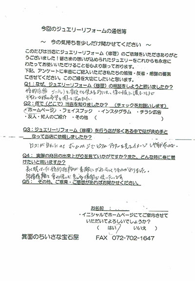 ホームページジュエリーリフォームを行う店が多くある中で何が決め手となって当店に依頼をしましたか?