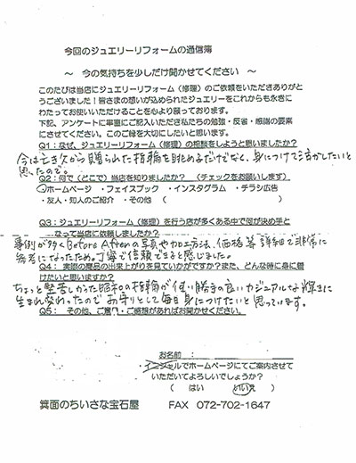ジュエリーリフォームを行う店が多くある中で何が決め手となって当店に依頼をしましたか?