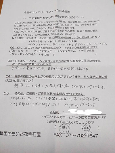 ホームページジュエリーリフォームを行う店が多くある中で何が決め手となって当店に依頼をしましたか?