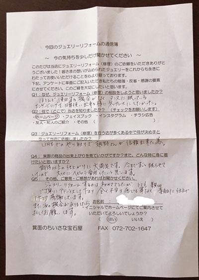 ジュエリーリフォーム お客様の声(442)