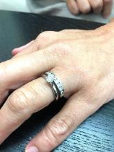 シンプルでダイヤがとても綺麗に見えます。エタニティーや結婚指輪ともぴったりフィットで着けやすいです。