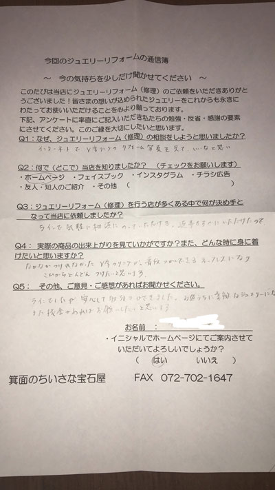 ジュエリーリフォーム お客様の声(465)