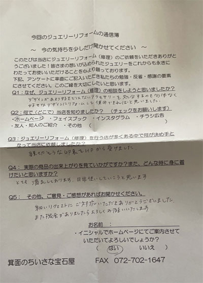 ジュエリーリフォーム お客様の声(471)