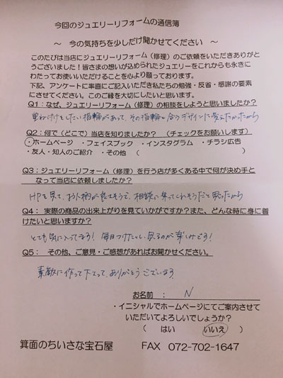 ジュエリーリフォーム お客様の声(476)