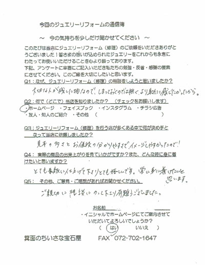 ホームページジュエリーリフォームを行う店が多くある中で何が決め手となって当店に依頼をしましたか?