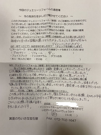 祖母から立て爪の指輪を譲ってもらったが、ネックレスにして自分の好みにしたかったから何で(どこで)当店を知りましたか?(検索ワードは?)