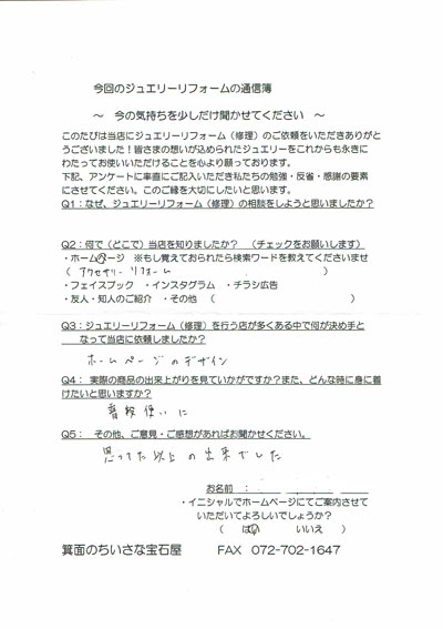 ホームページ(アクセサリー リフォーム)ジュエリーリフォームを行う店が多くある中で何が決め手となって当店に依頼をしましたか?