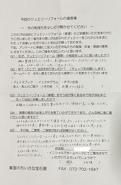 ジュエリーリフォーム お客様の声(509)