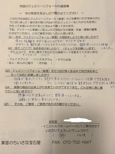 ジュエリーリフォーム お客様の声(515)