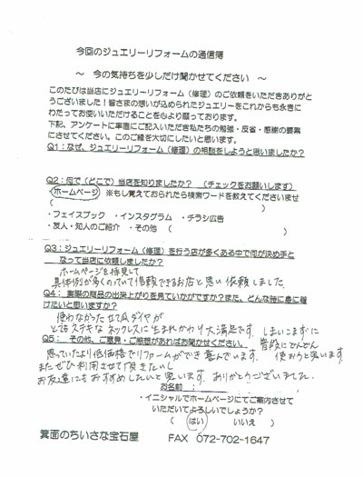 ジュエリーリフォームを行う店が多くある中で何が決め手となって当店に依頼をしましたか?