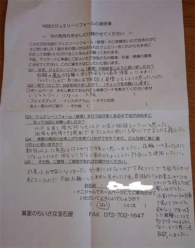 ホームページ(ジュエリーリフォーム 大阪)ジュエリーリフォームを行う店が多くある中で何が決め手となって当店に依頼をしましたか?